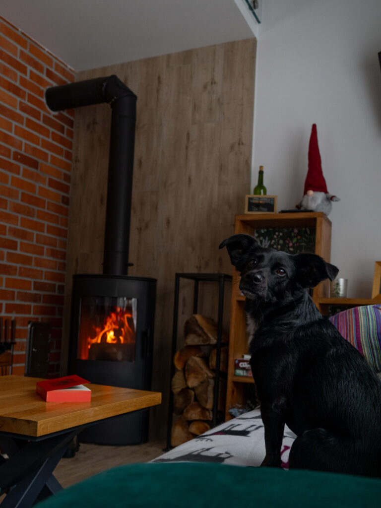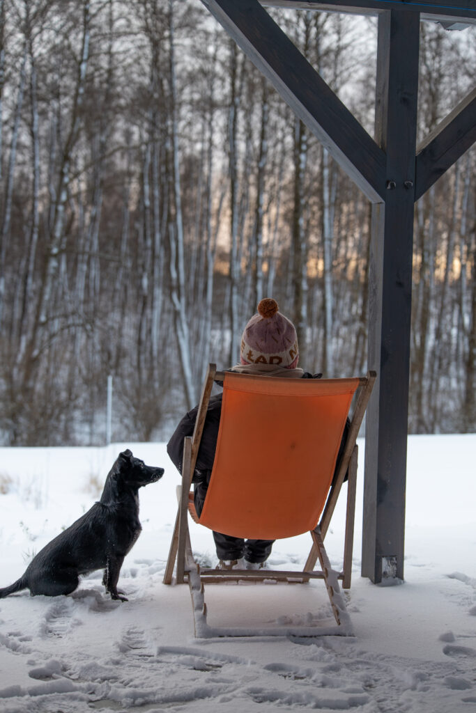Już od pierwszych chwil dało się odczuć ulgę. Zamiast wystrzałów i błysków fajerwerków były spacery po leśnych ścieżkach, ogrom śniegu i spokój, którego nam brakowało. Nasz pies szybko się zrelaksował – bez stresu, drżenia i chowania się po kątach cieszył się prawdziwą zimą, która towarzyszyła nam przez cały pobyt. Codzienne leśne spacery w ciszy i spokoju z herbatą w termosie pozwalały odkrywać piękno okolicy w ciszy i własnym tempie, a my właśnie tego szukamy, gdy wybieramy miejsce na Sylwestra „po naszemu”.