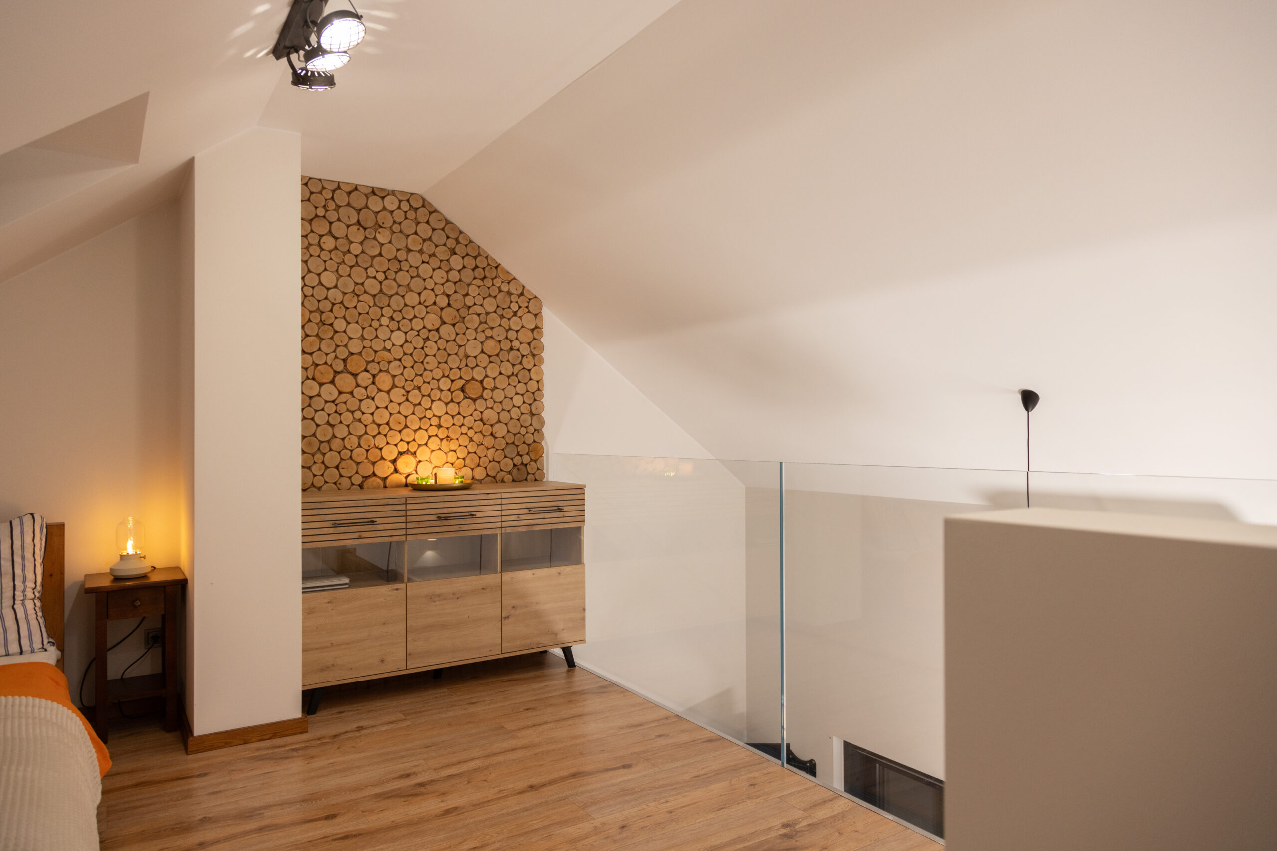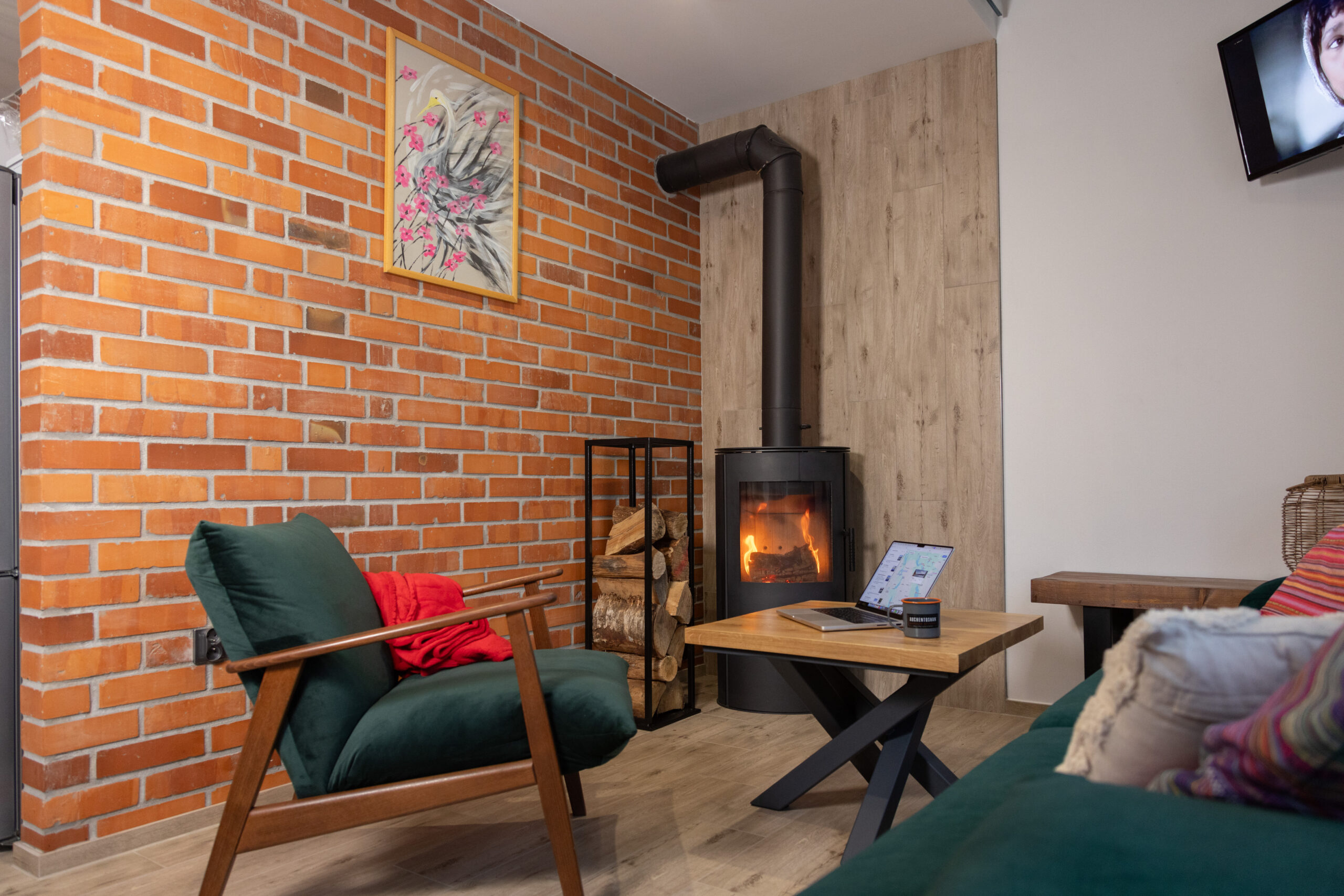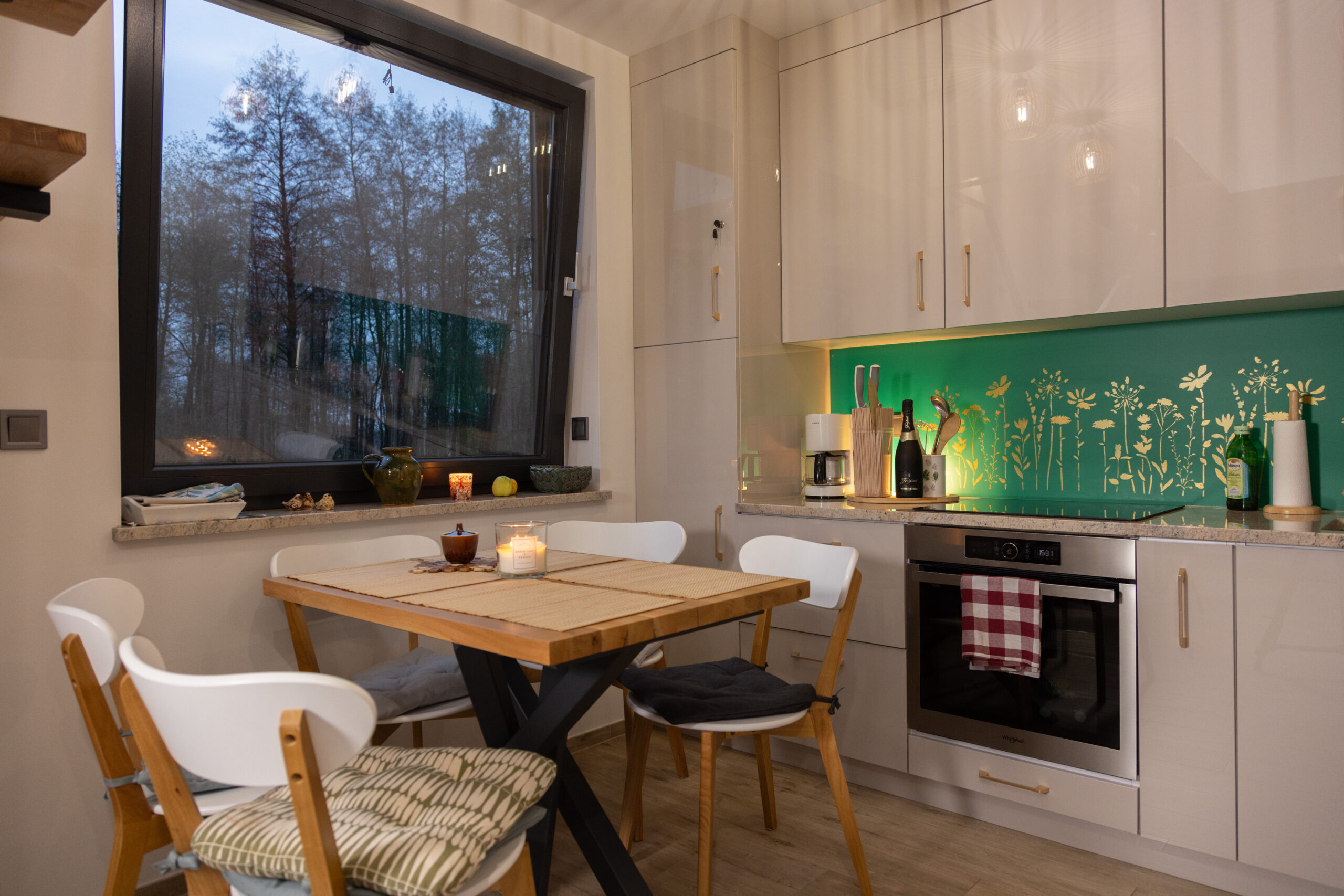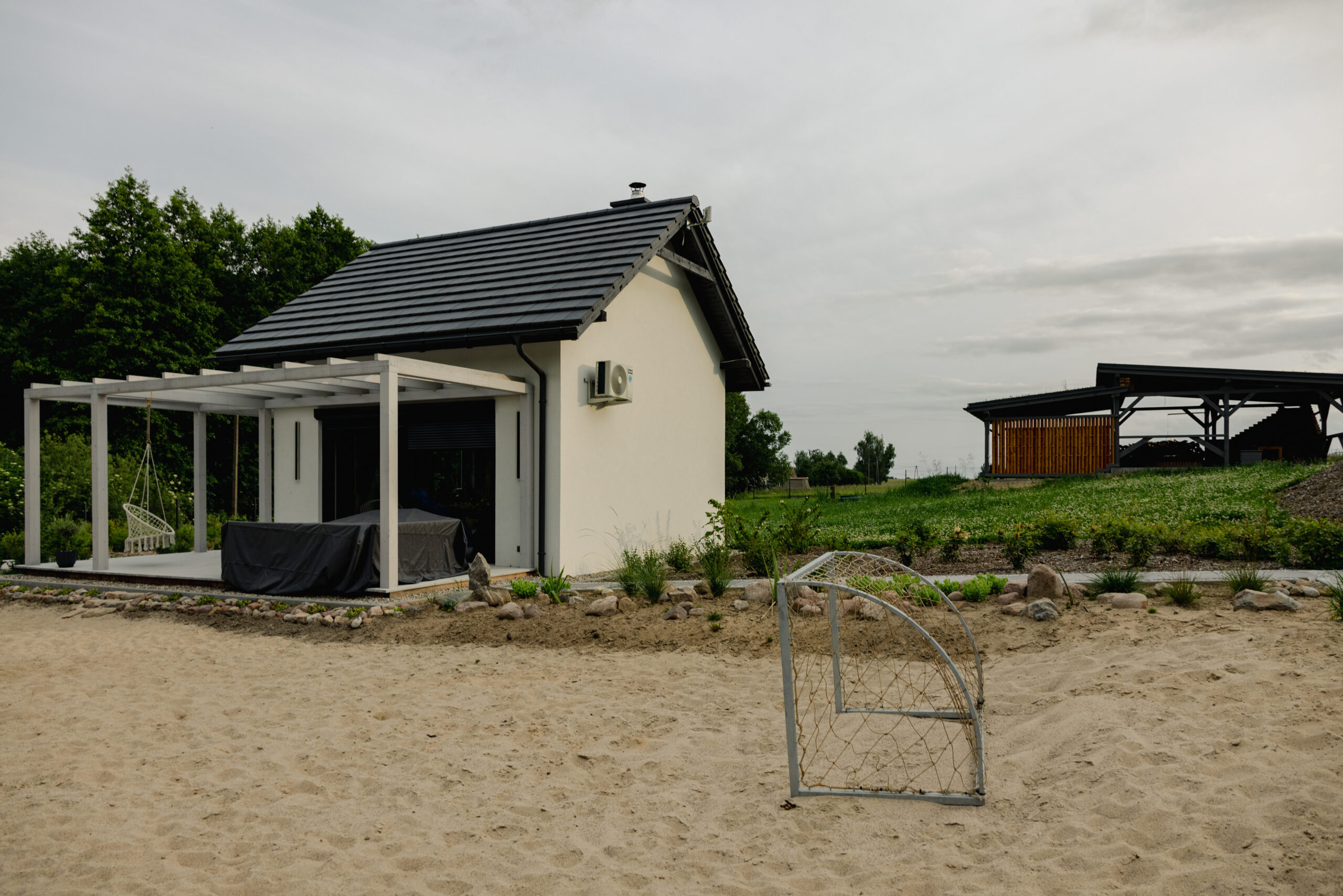 „Czapla” oferuje 6 miejsc noclegowych – dwa na parterze i cztery na antresoli. Wnętrze domku jest klimatyzowane, a dodatkowo można je dogrzać stylowym pieco-kominkiem. W pełni wyposażona kuchnia zawiera zmywarkę, piekarnik, płytę indukcyjną oraz komplet naczyń, co umożliwia wygodne przygotowanie posiłków. Dodatkowo, w domku znajduje się pralka, dodatkowy fotel na taras oraz leżaki. Zapewniamy kompletną pościel i ręczniki.